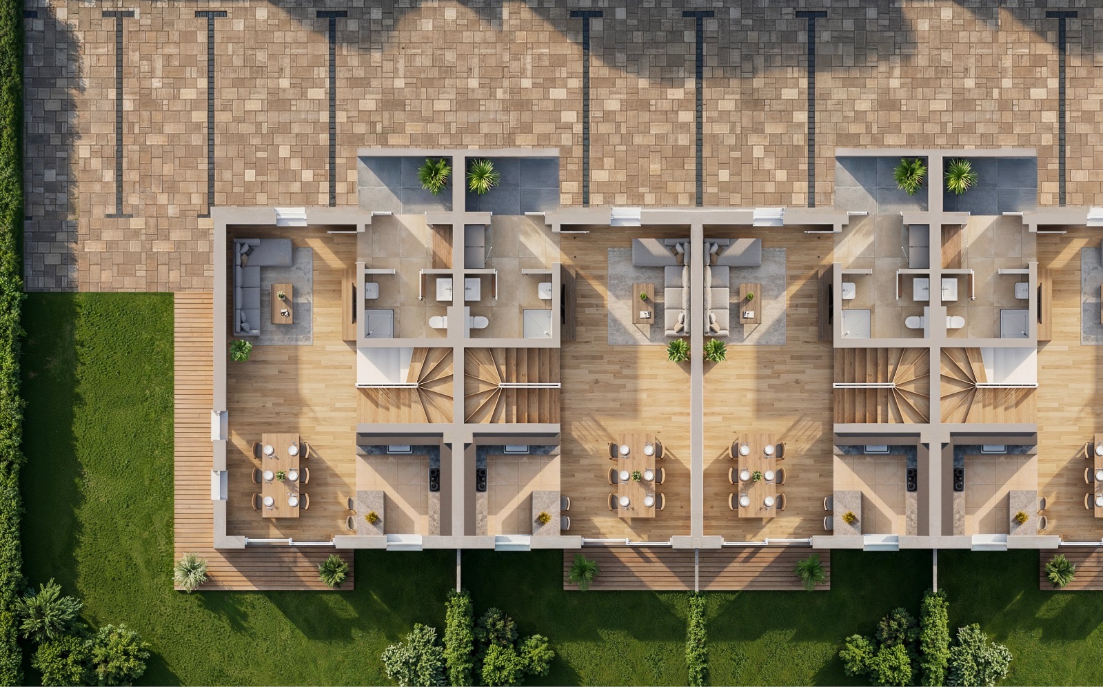 Izgradnja pet usklađenih stambenih jedinica koje moraju funkcionirati kao cjelina, a istovremeno svakom stanaru pružiti osjećaj privatnog doma. Svaka kuća trebala je imati jasno definiran vanjski prostor, kvalitetnu izvedbu u svim detaljima i premijum opremu — a sve to po cijeni dostupnoj stvarnim kupcima, ne samo investitorima.