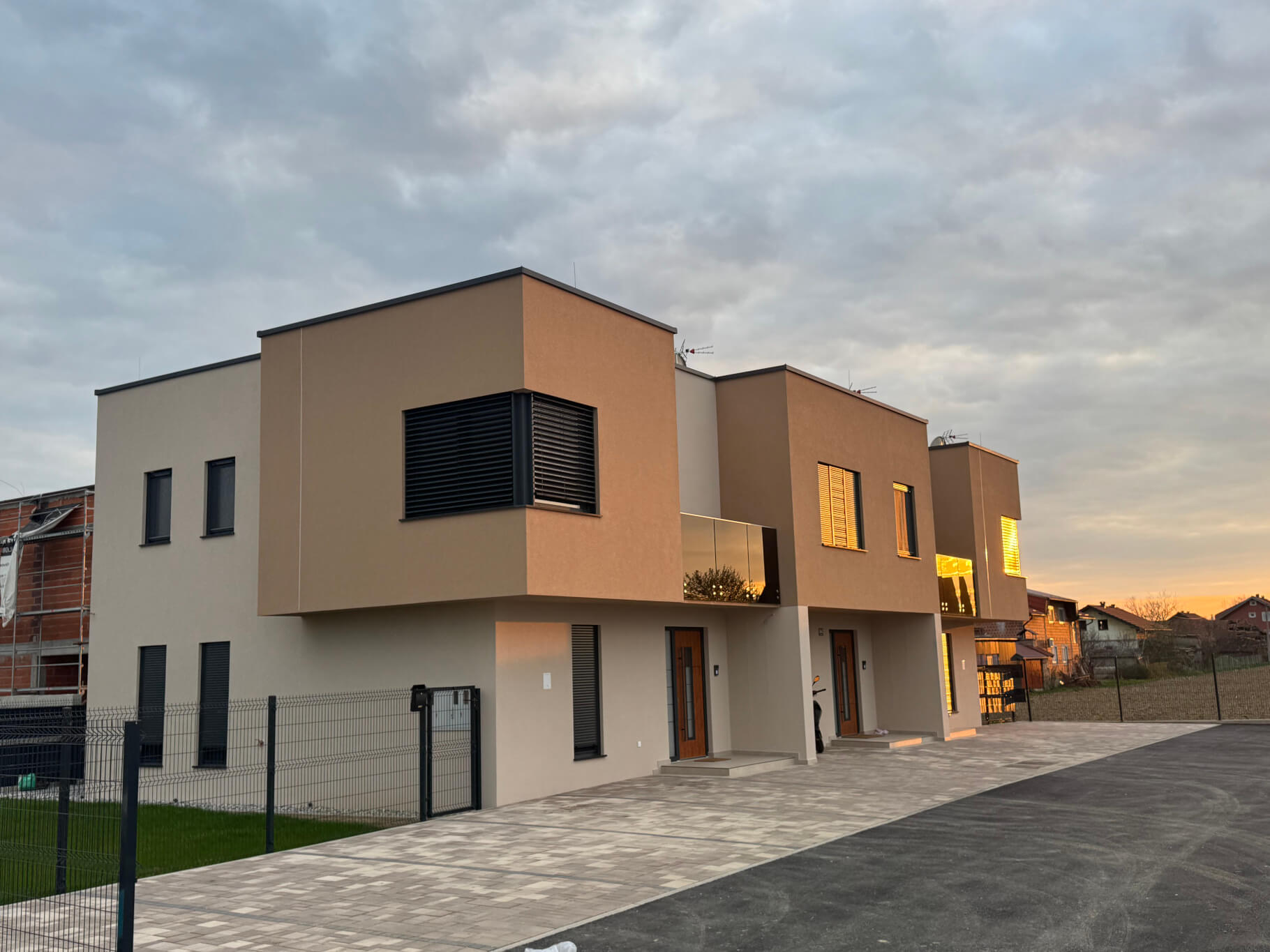 Područje Općine Rugvica do tada nije imalo usporedivih stambenih projekata ovog tipa. Izazov je bio postaviti novi standard — i arhitektonski i građevinski — na tržištu koje nije imalo referentnih točaka. Istovremeno je trebalo osigurati da svaka od tri jedinice funkcionira kao potpuno samostalan dom, s privatnošću, funkcionalnim vanjskim prostorom i kvalitetnom izvedbom u svim detaljima.
